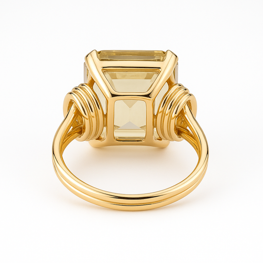 This 14K ring features a graceful design that seamlessly blends yellow gold accented with yellow diamonds and white gold finished with VS2, G color quality diamonds. Both ends are beautifully set with natural pear-shaped green emeralds, creating an exquisite balance of color and detail. D: . ...